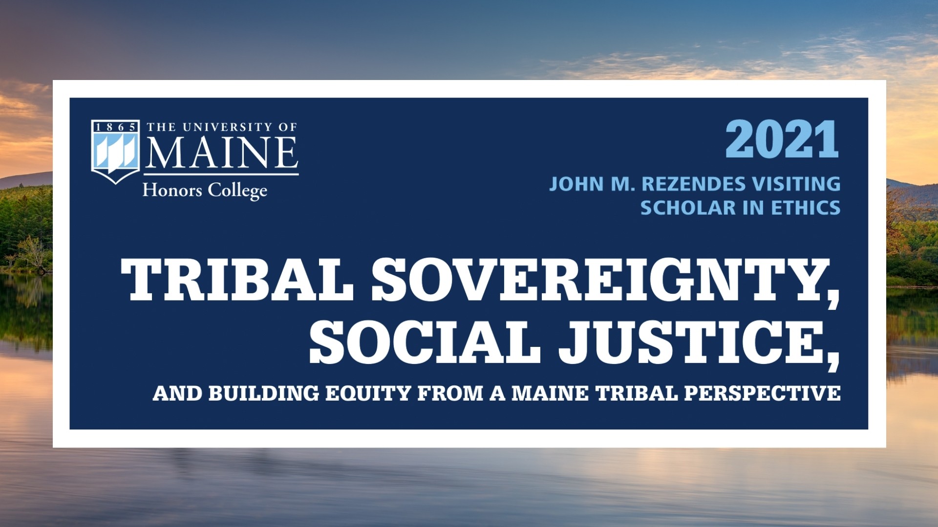The Honors College is excited to announce our upcoming John M. Rezendes Visiting Scholar in Ethics, Penobscot Nation Tribal Ambassador Maulian Dana. Ambassador Dana will be the speaker for our 2021 Rezendes Ethics Essay event on Tuesday, April 27th at 3:30 PM EST.