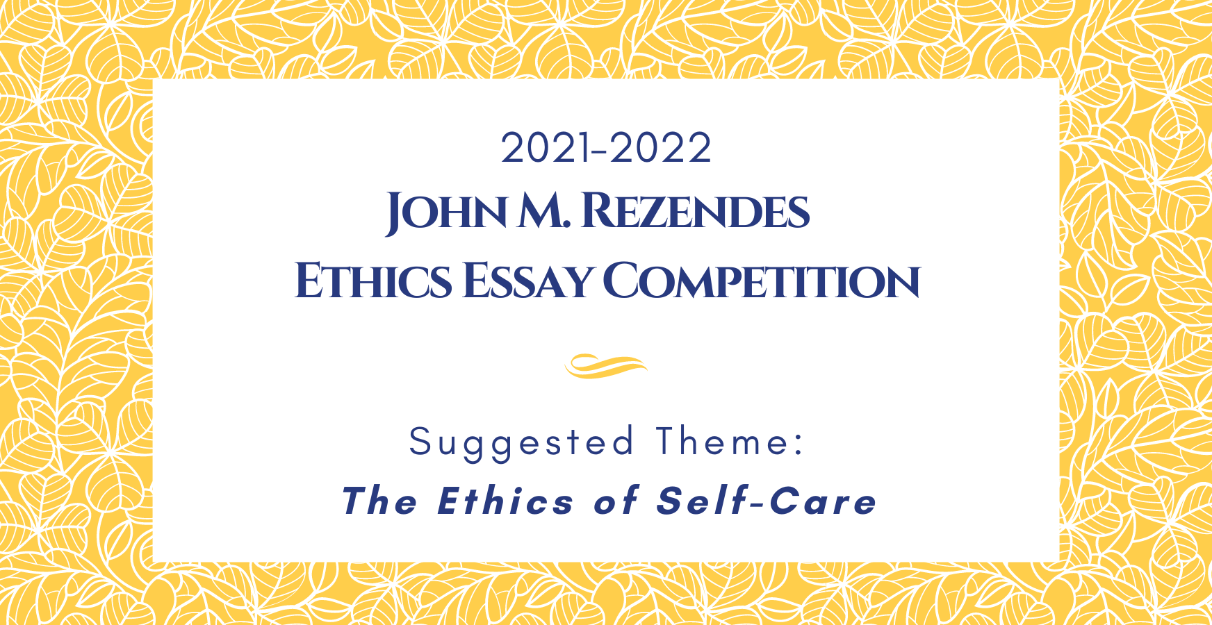 Announcing the annual John M. Rezendes Ethics Essay Competition. This years’ suggested theme is: The Ethics of Self Care. Learn more about the essay competition below!