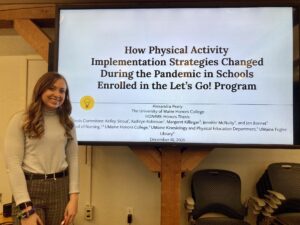 the campus rec center. This winter, Peary defended her Honors thesis, titled “How Physical Activity Implementation Strategies Changed During the Covid-19 Pandemic in Schools Enrolled in the Let’s Go! Program.” Her thesis earned the distinction of Highest Honors and was also awarded a CUGR Academic Year Fellowship. Peary looks now to present at Sigma’s Creating Healthy Work Environments 2022, Washington, D.C Conference as a Rising Star of Research and Scholarship Invited Student Poster recipient and finalize her research for publication.